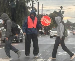 Over 12 years later, Flester is still serving the campus daily. People who drive by the school before school, after school, or at lunch, can find him in a hi-vis jacket holding a stop sign controlling traffic so students can safely cross.